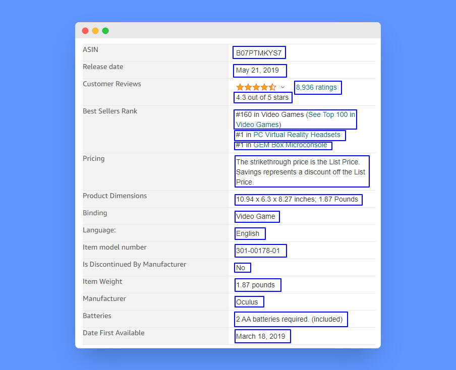 Get any kind of data from Amazon: product details, prices, reviews, competing products, seller contact data